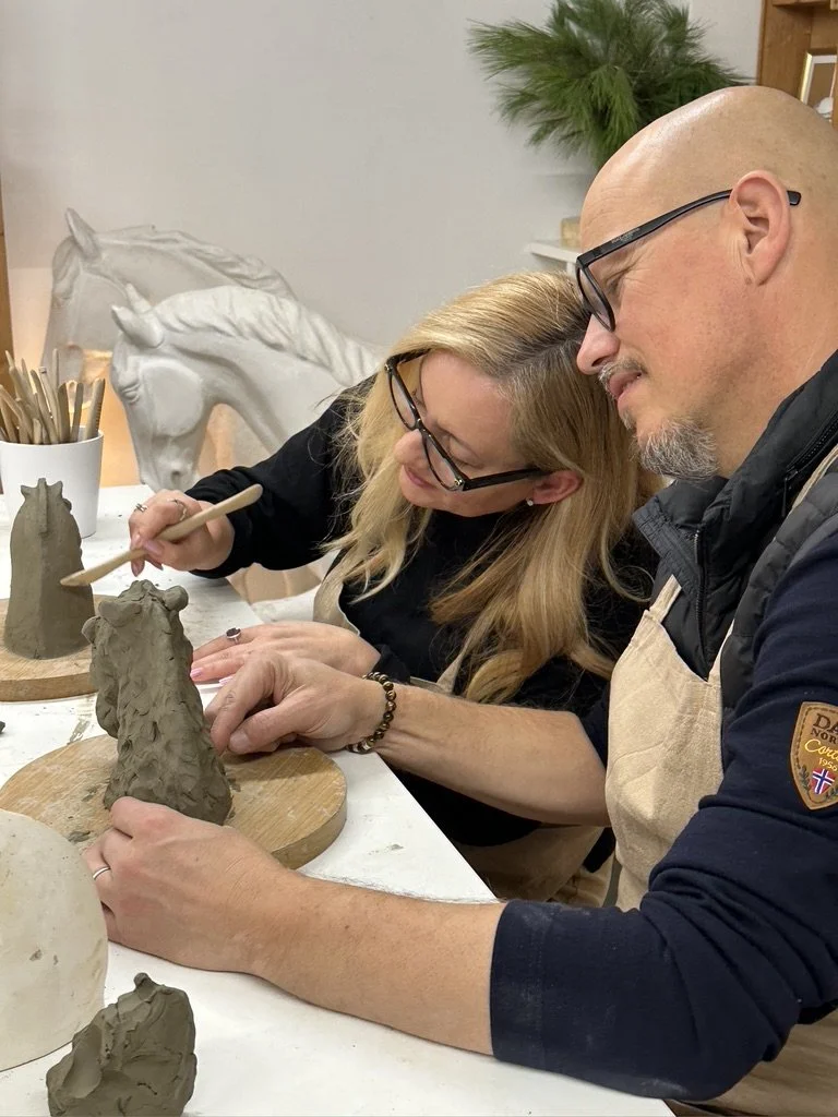 Kiparska radionica uključuje osnove kiparskog modeliranja i oblikovanje glinom, izrada skulpture na temu konja, usluga pečenja skulpture, patiniranje skulpture, piće, snack.